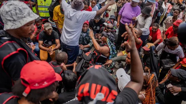 Protests in Cape Town outside parliament ahead of the budget speech on Wednesday, 25 February 2026.